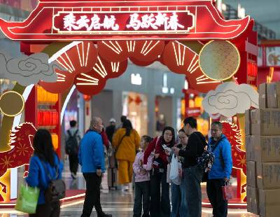 媒体记者在博鳌亚洲论坛2019年年会新闻中心大堂走过。