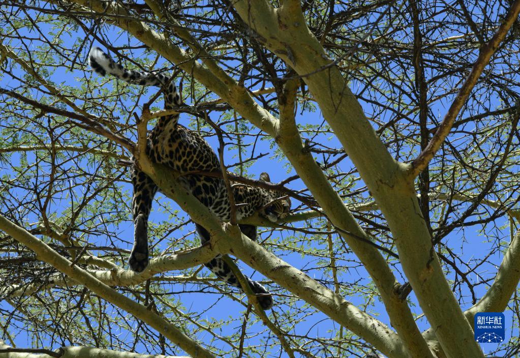 这是2月4日在肯尼亚纳纽基肯尼亚山野生动物保护区的动物孤儿院内拍摄的花豹。
