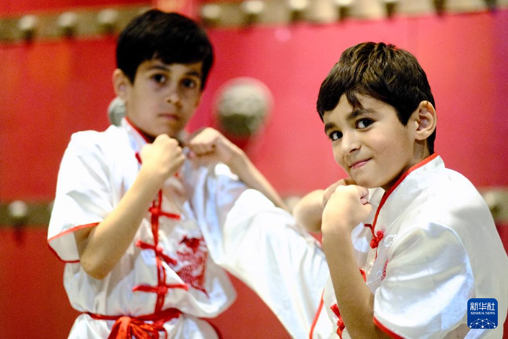 “一!二!三!……”在塔吉克斯坦首都杜尚别的一处武术馆,埃列奥诺拉·法伊佐娃正和十来个10岁左右的孩子练习武术,发出的中文口令干脆有力。