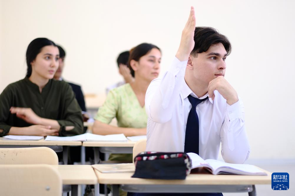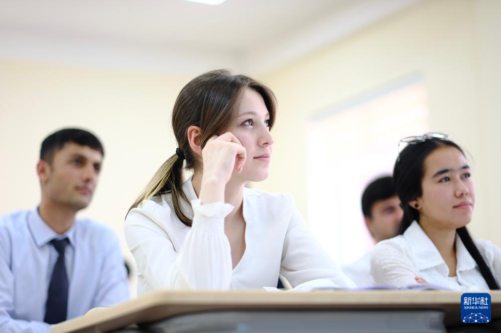6月12日,在塔吉克斯坦首都杜尚别,学生在塔吉克斯坦民族大学孔子学院课堂听课。新华社记者 郑开君 摄