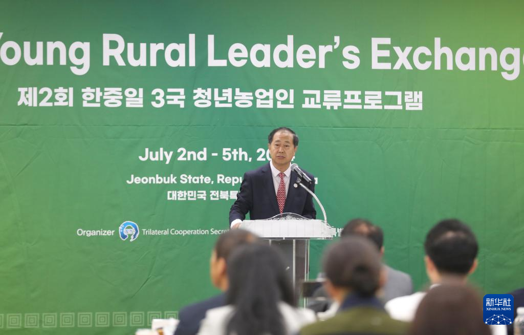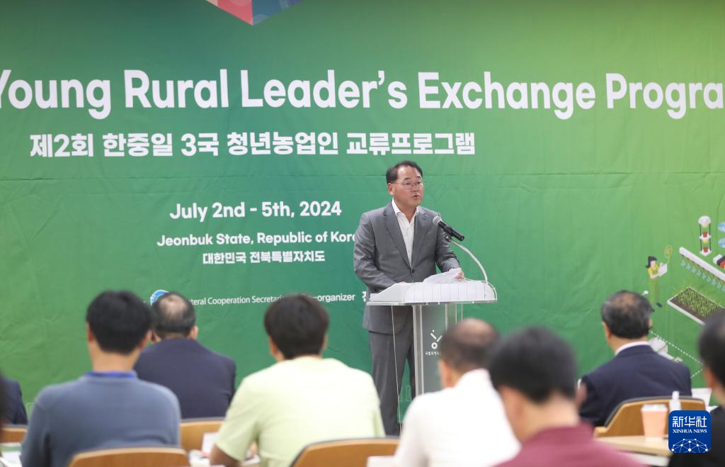 7月3日,在韩国全州,全北特别自治道副知事金钟熏在第二届中日韩新农人交流项目开幕式上致辞。