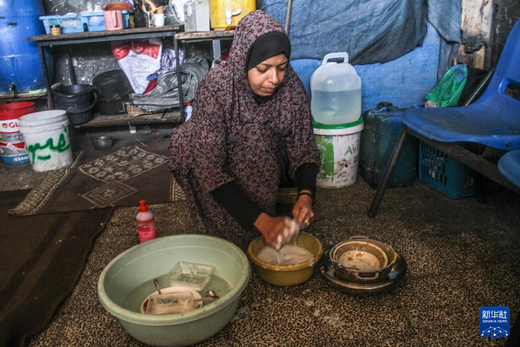 7月17日,在加沙地带北部,当地居民清洗餐具。
