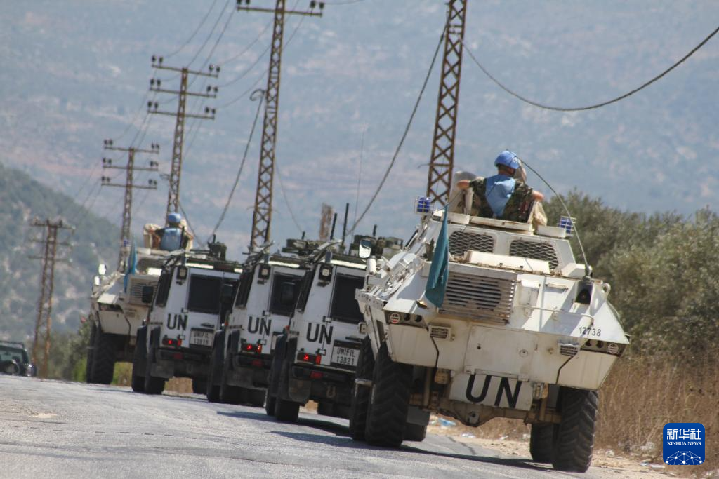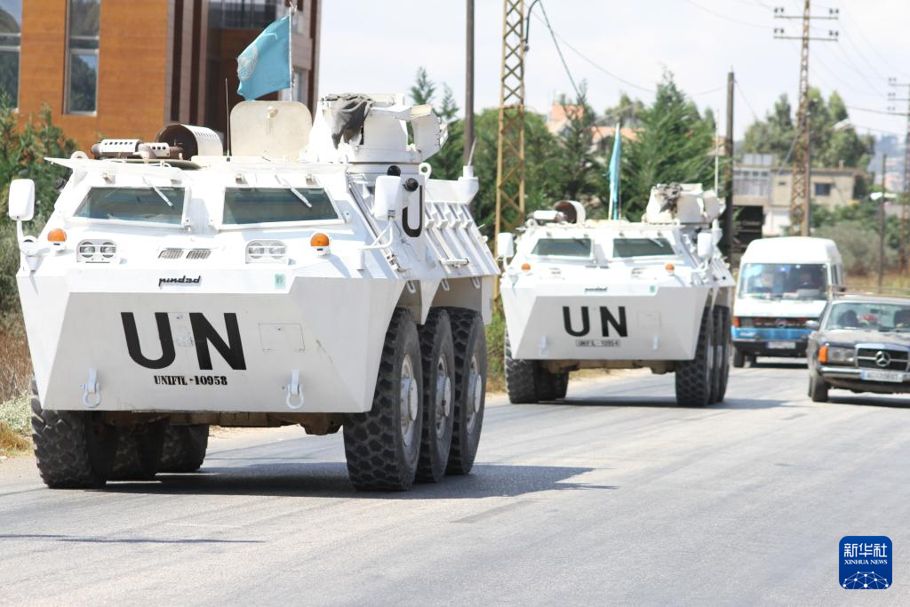 这是8月28日在黎巴嫩迈尔杰云拍摄的联合国驻黎巴嫩临时部队车辆。