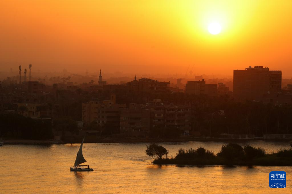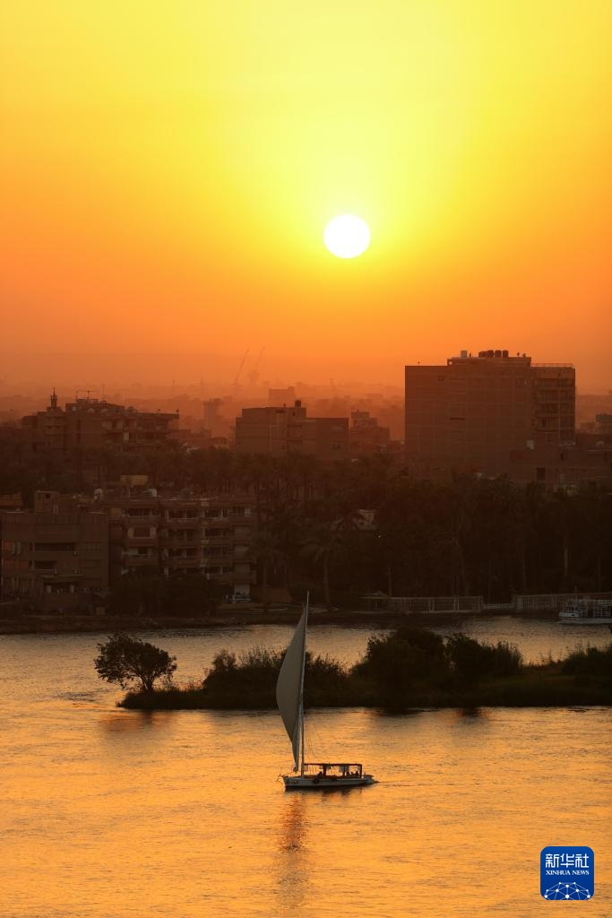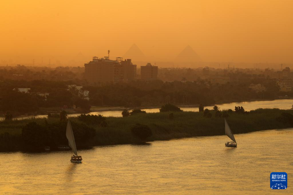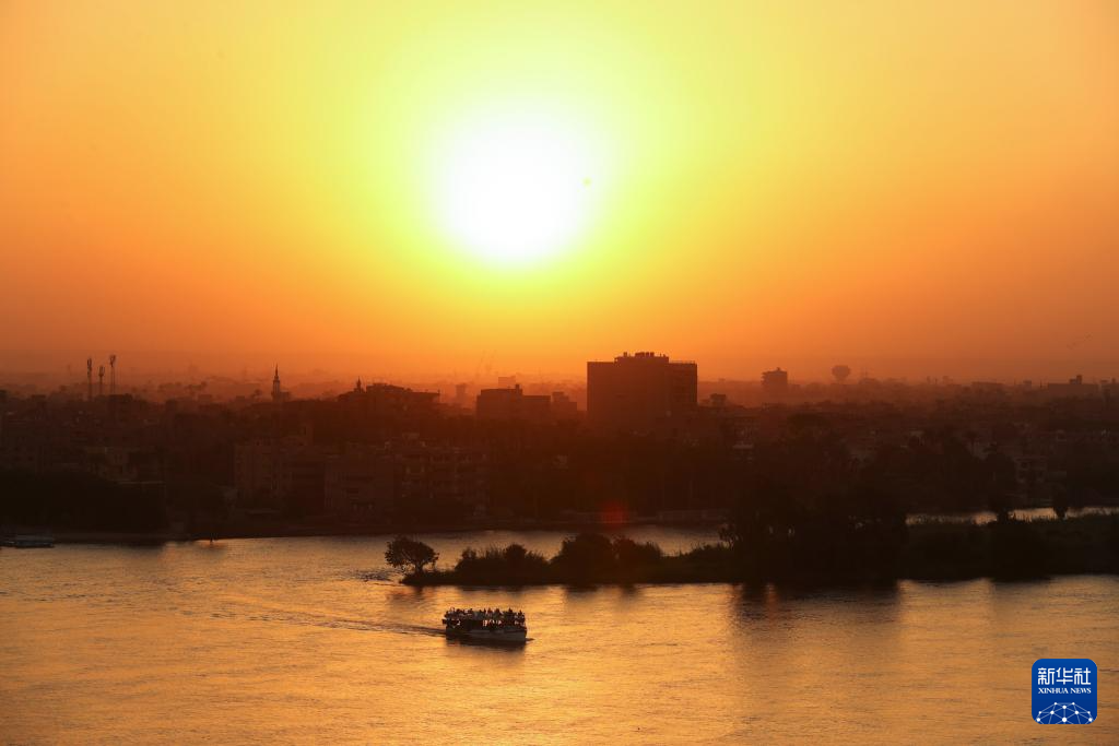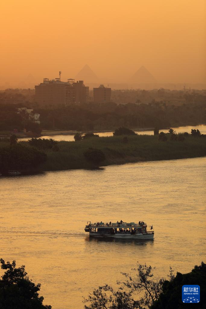 这是埃及开罗日落时分的尼罗河景色(10月8日摄)。新华社记者隋先凯 摄