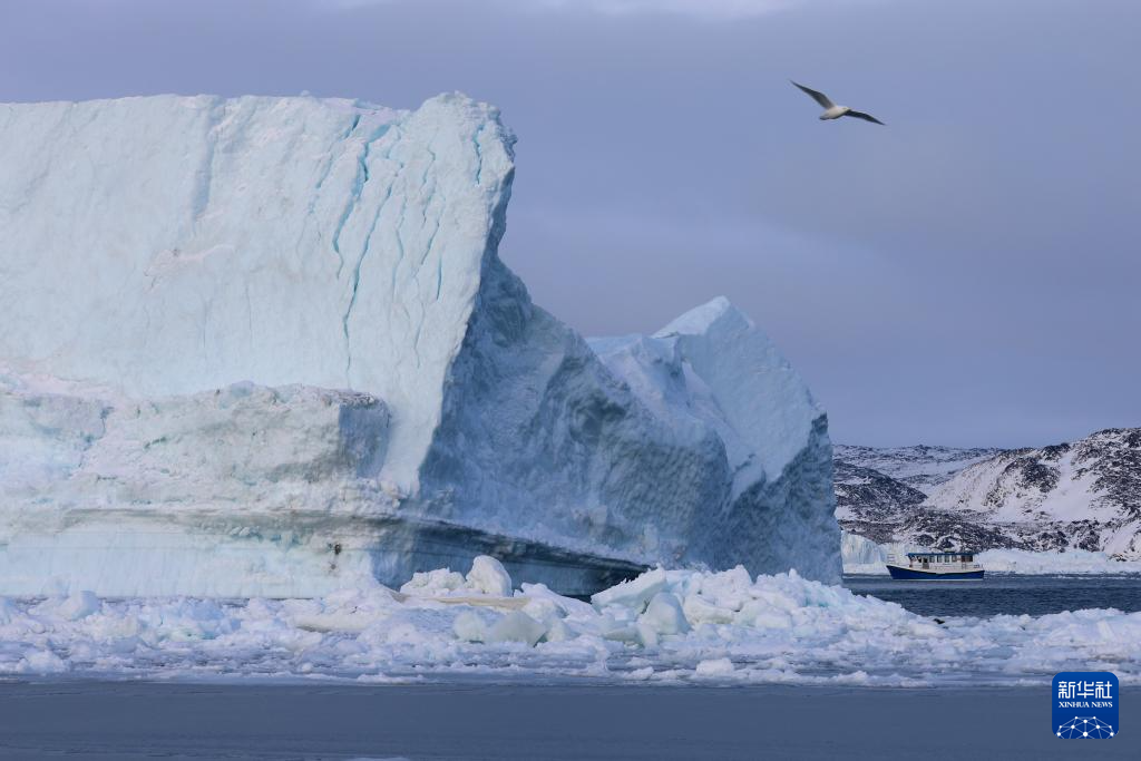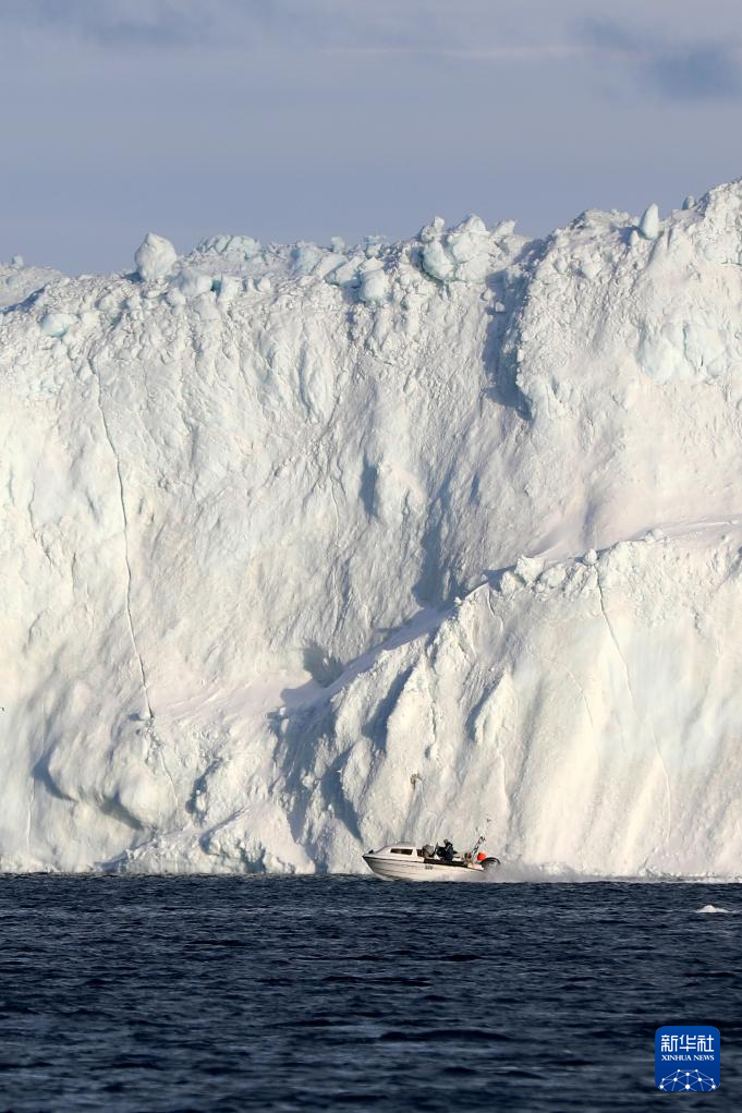 这是3月22日在丹麦自治领地格陵兰岛迪斯科湾拍摄的冰山和快艇。