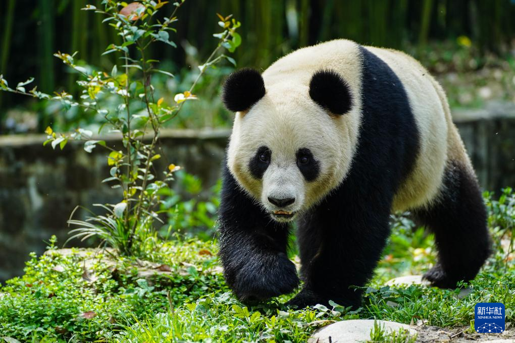 4月22日,在中国大熊猫保护研究中心都江堰基地拍摄的大熊猫“荷风”。