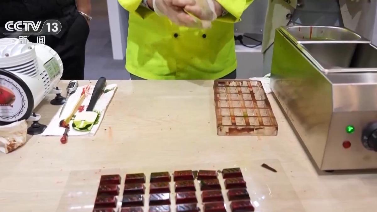 总台记者胡浩然:除了智能科技带来的新体验之外,在欧洲精品巧克力展区还可以现场体验制作和品鉴一块来自匈牙利的巧克力。