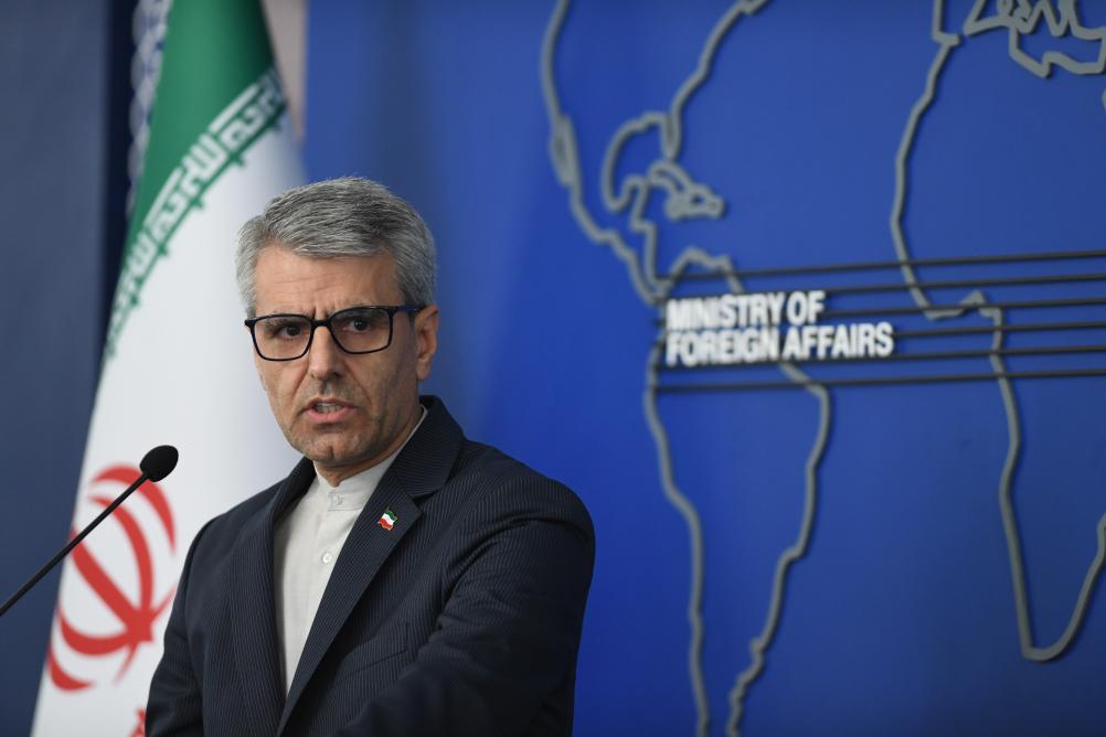 5月5日,伊朗外交部发言人巴加埃在德黑兰出席新闻发布会。新华社记者 沙达提 摄