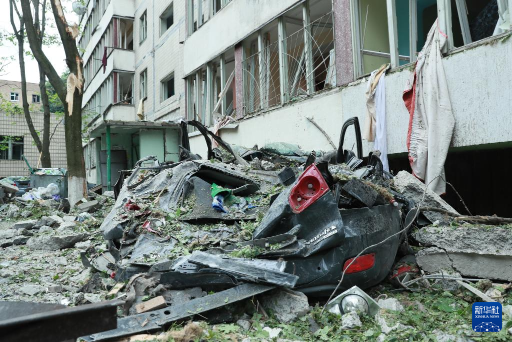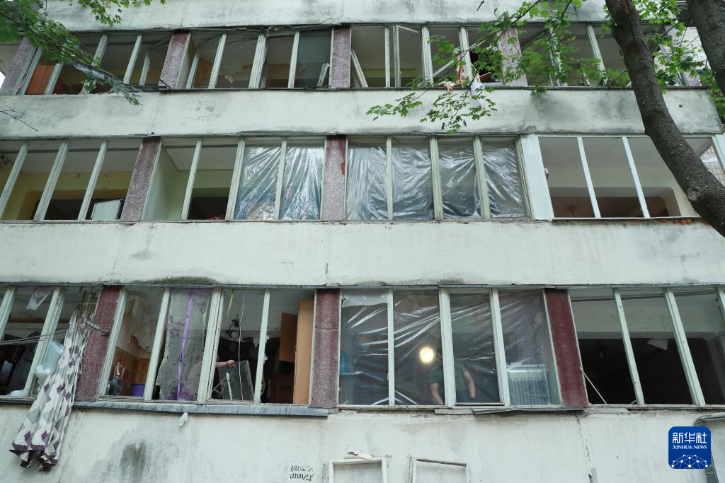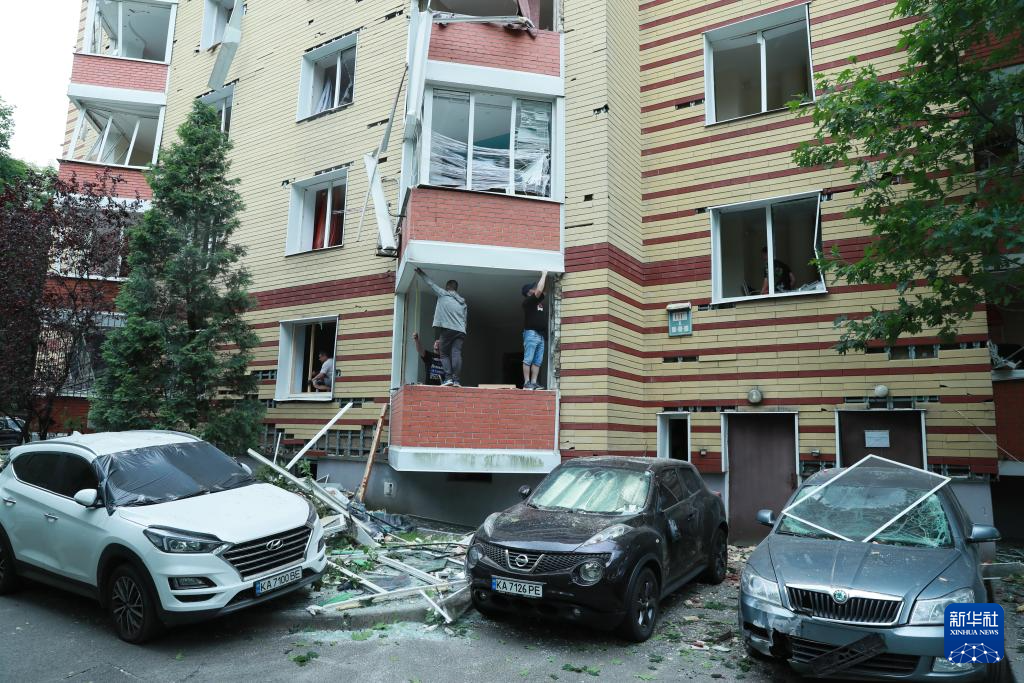 6月17日,乌克兰基辅市舍甫琴科夫斯基区的一栋建筑物遭导弹袭击。
