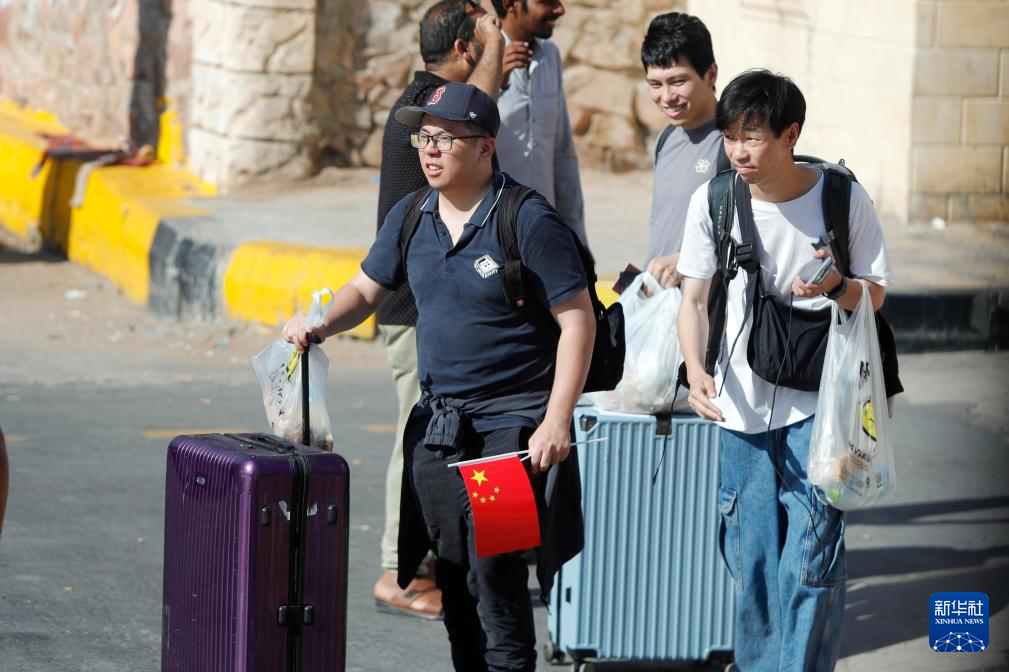6月19日,在埃及南西奈省塔巴口岸,从以色列撤离的中国公民准备乘车离开。