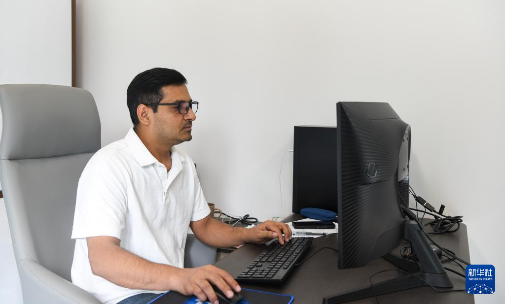 7月28日,瓦西姆·拉扎在中国热带农业科学院热带作物生物育种全国重点实验室的办公室工作。