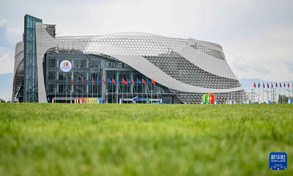 这是8月28日在宁夏银川市拍摄的第七届中国—阿拉伯国家博览会开幕式会场外景。