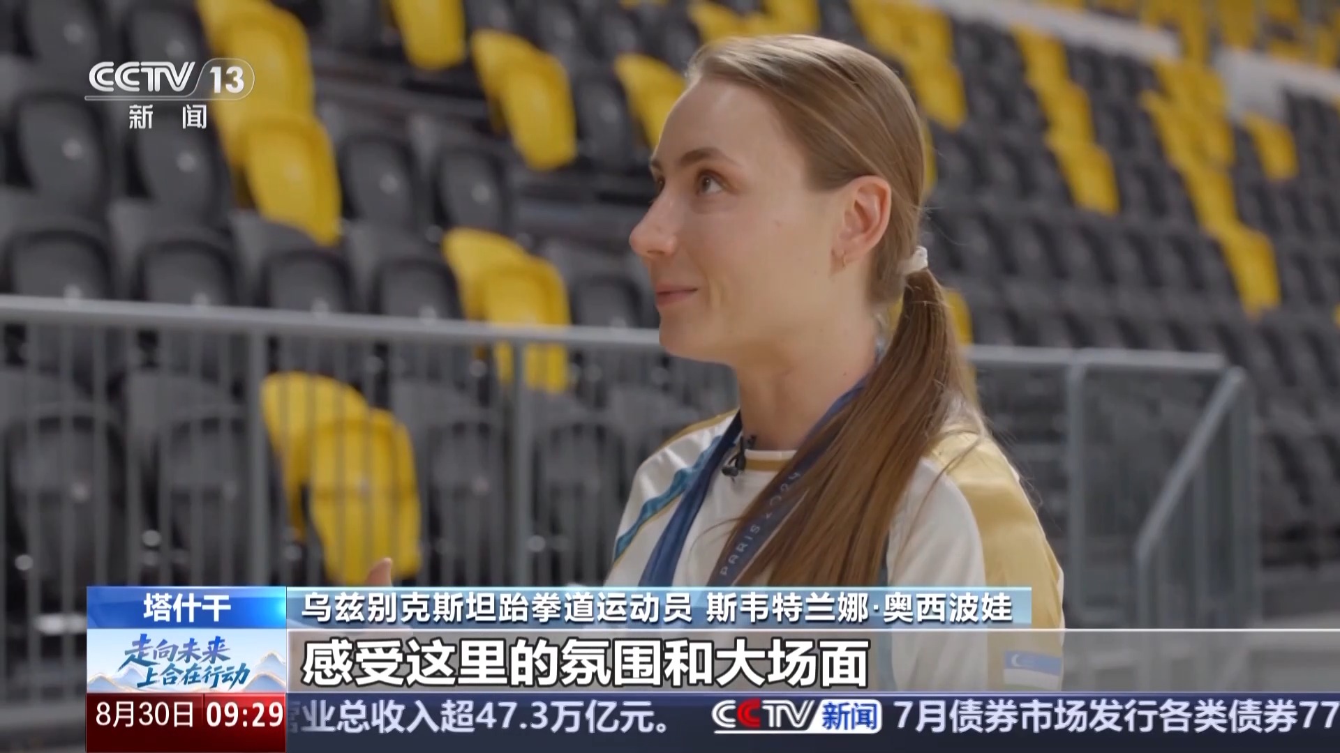 乌兹别克斯坦跆拳道运动员斯韦特兰娜·奥西波娃:我们就在这里练习,感受这里的氛围和大场面,想象自己正站在正式的比赛场上。