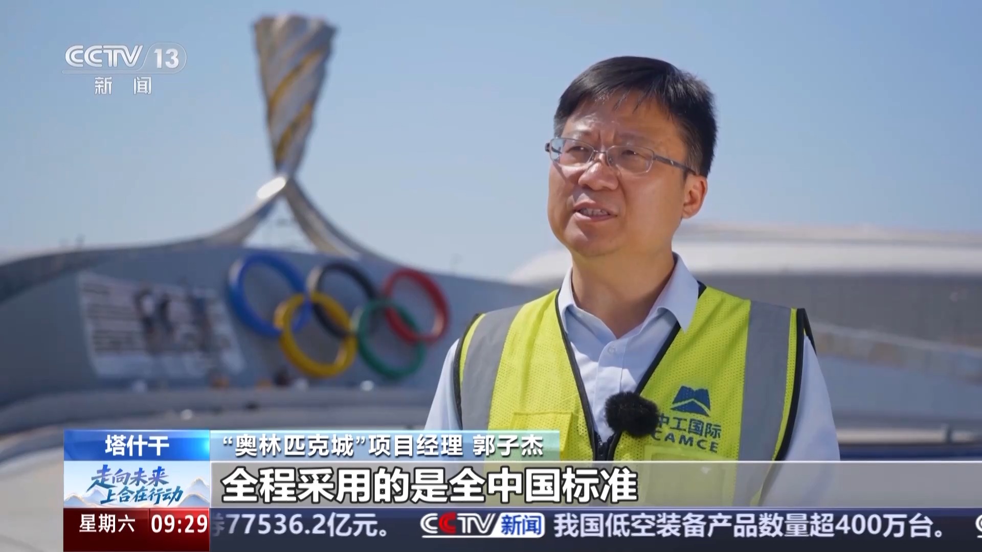 总台报道员伊利亚·巴耶夫:几年前这里还是一片荒地,如今一座世界级工程在约100公顷的土地上拔地而起,这里就是中亚首座 “奥林匹克城”。