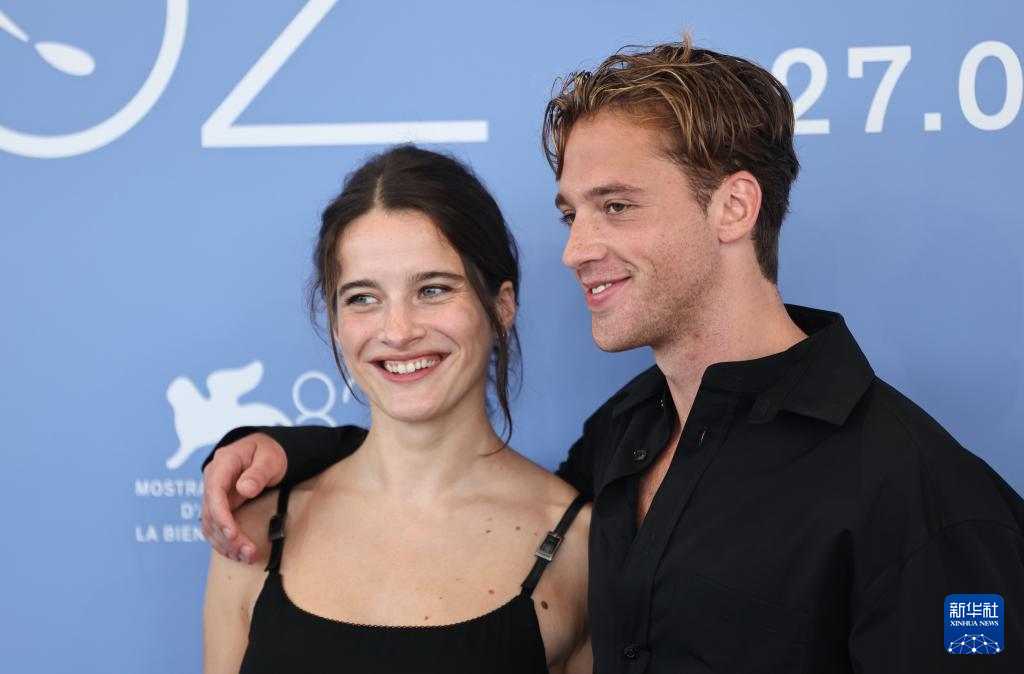 9月2日,在意大利威尼斯,电影《局外人》演员邦雅曼·瓦赞(右)和丽贝卡·马德出席拍照式。