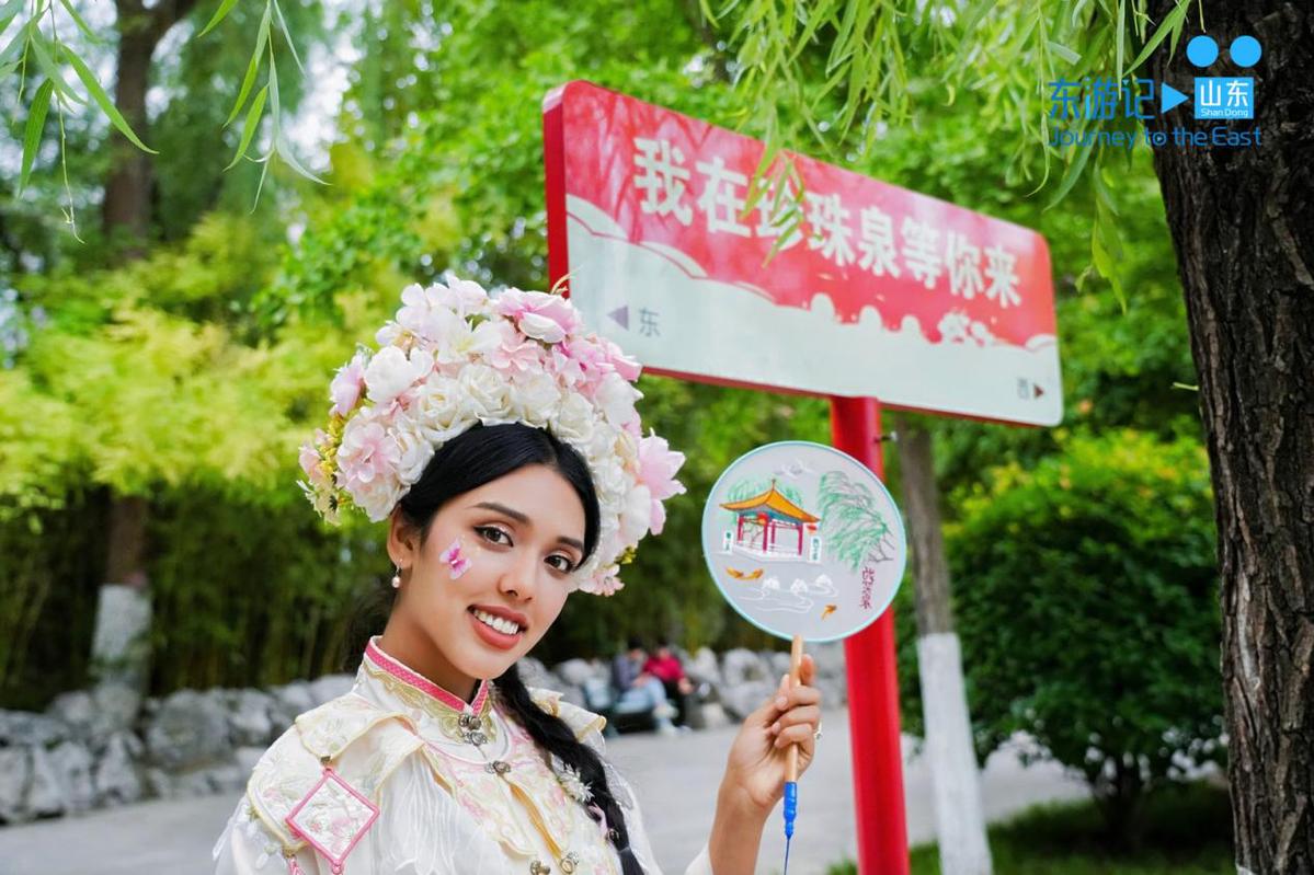 Jack和Sophia漫步于济南街头,身着汉服游览趵突泉、珍珠泉,与本地汉服爱好者互动;在大明湖上泛舟,聆听一段文学作品中有关乾隆与夏雨荷的故事;品尝地道鲁菜,感受济南独特的饮食文化。异国面容与中华传统服饰的结合,吸引了不少市民和游客的目光。