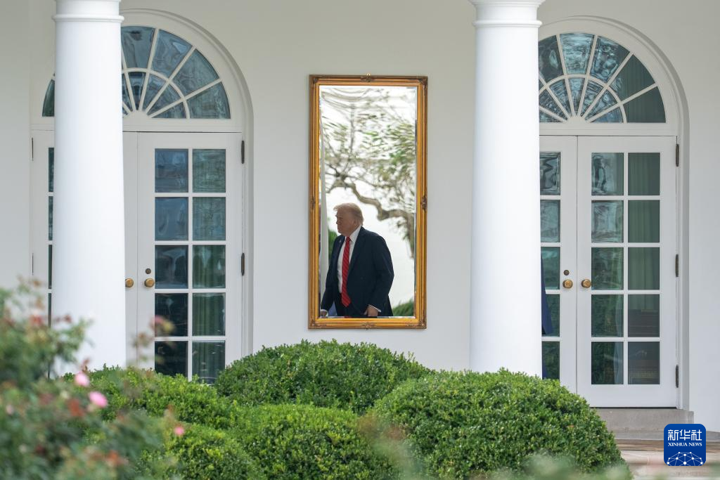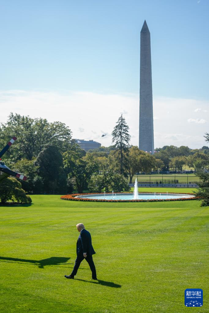 10月10日,在美国首都华盛顿,美国总统特朗普准备乘直升机离开白宫。
