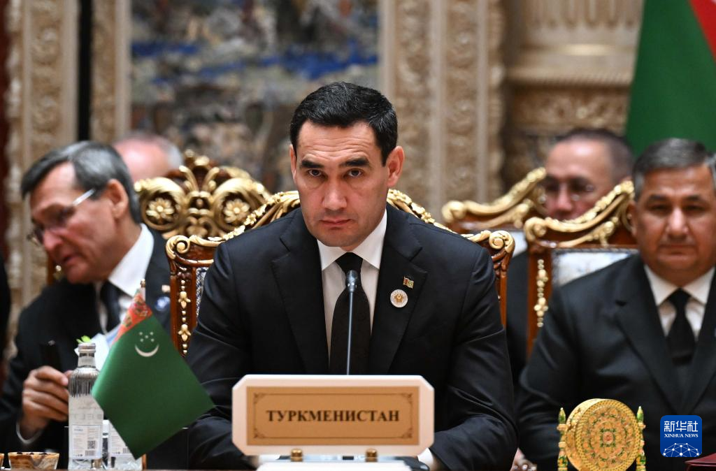 10月10日,在塔吉克斯坦首都杜尚别,土库曼斯坦总统别尔德穆哈梅多夫(中)出席独联体国家元首理事会会议。