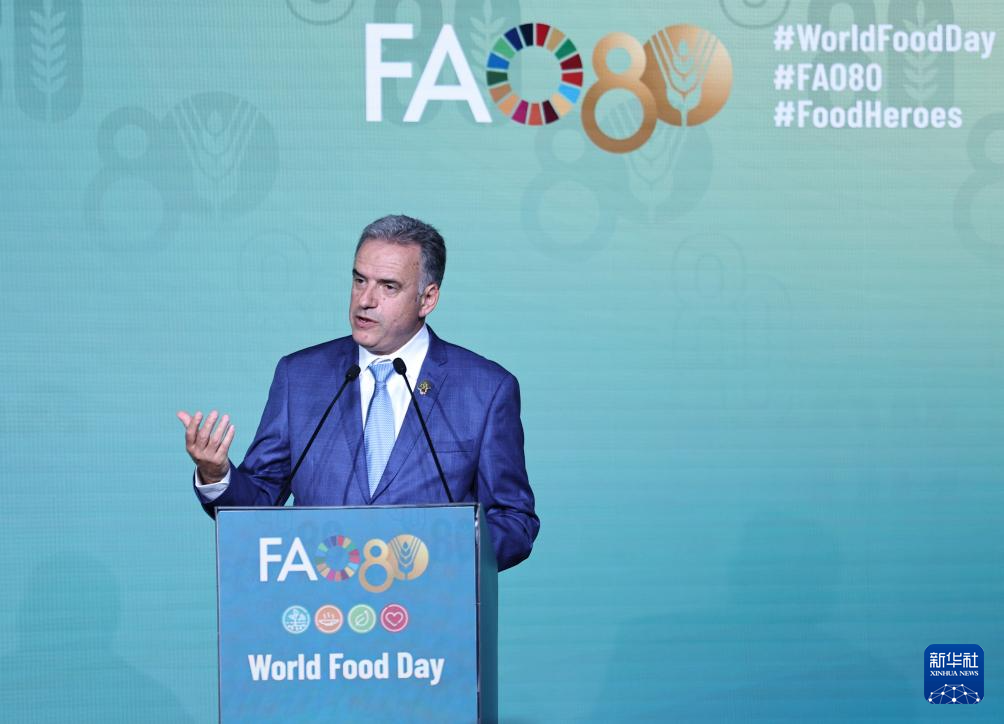 当日,世界粮食日暨联合国粮食及农业组织成立80周年庆祝活动在意大利罗马举行。