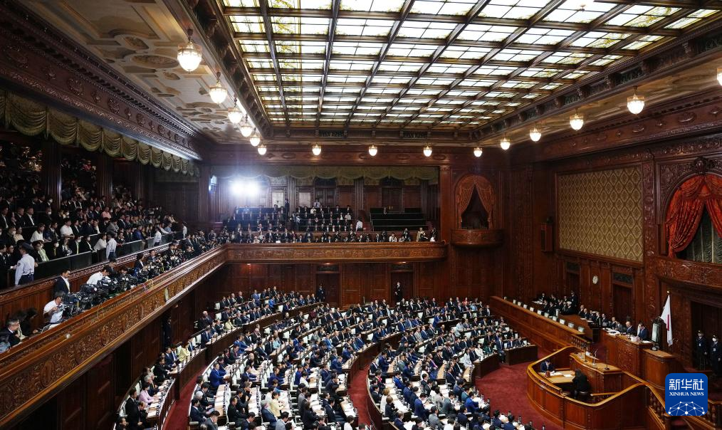10月21日,在日本东京,自民党总裁高市早苗(前排右二)在临时国会众议院首相指名选举现场阅读文件。