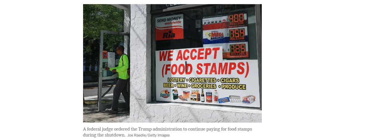 《纽约时报》的报道指出,即使“补充营养援助计划”的福利在11月的某个时间发放,人们仍然越来越担心,已经非常脆弱的美国民众将如何应对联邦政府关门和社会保障削减带来的影响。