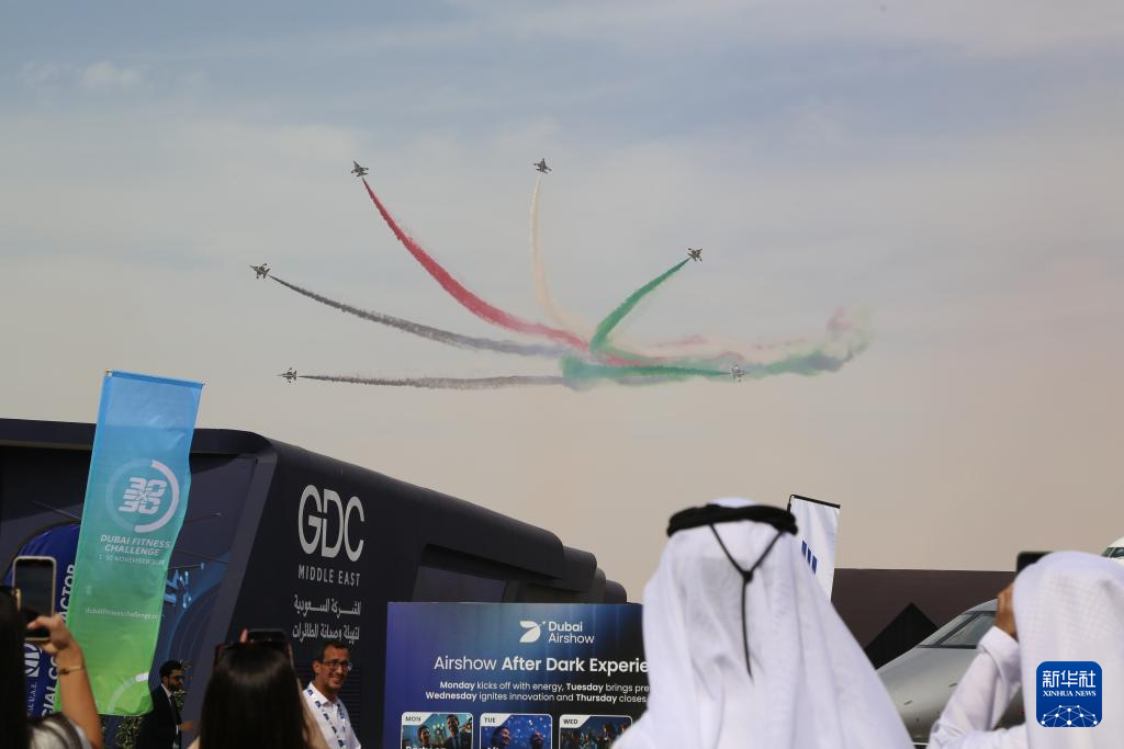 11月17日,在阿联酋迪拜,飞机在2025迪拜航空展上进行飞行特技表演。