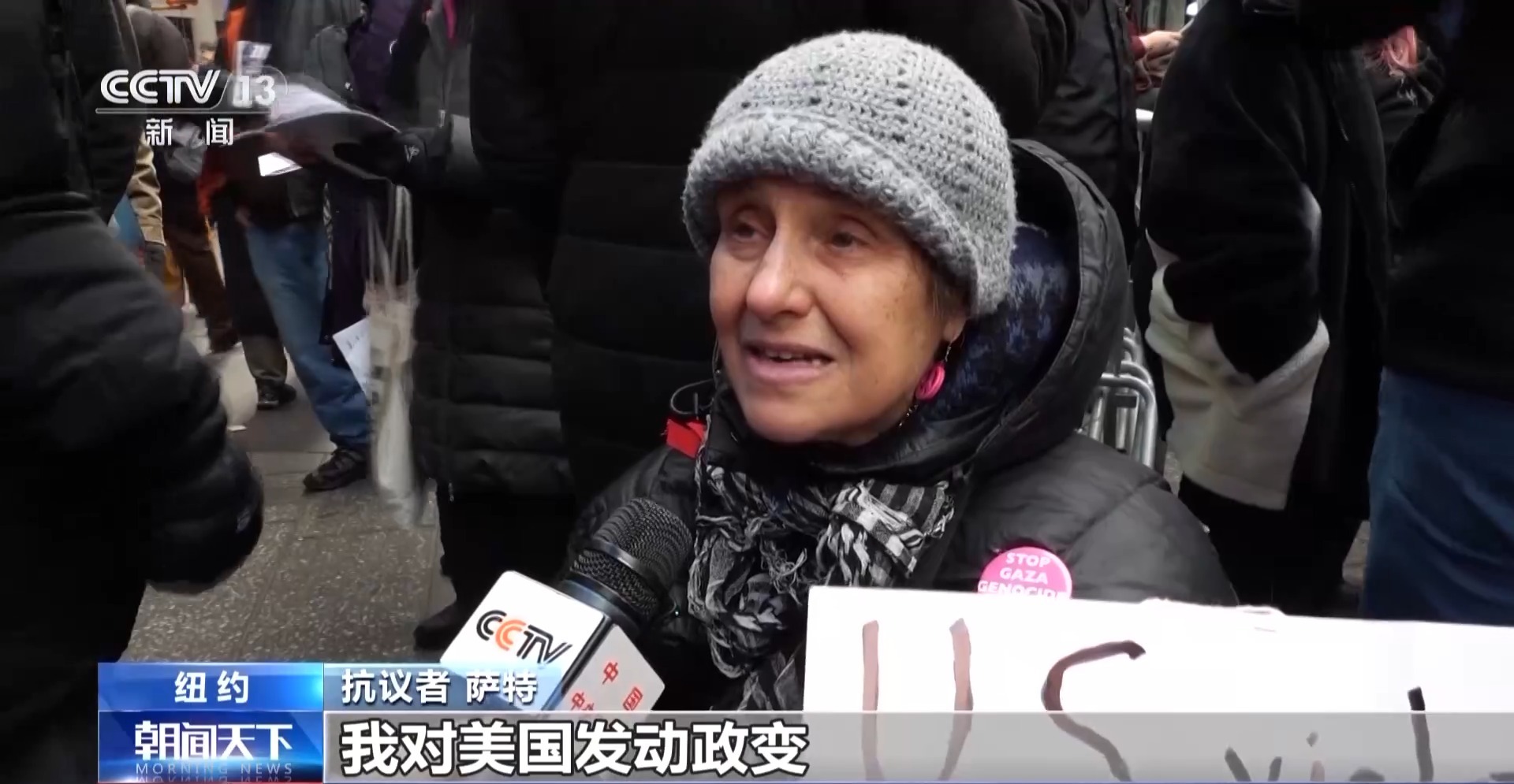 抗议者萨特:我对美国发动政变,违反国际法的行为感到极度震惊,一开始美国轰炸船只,杀害平民,然后直接派去军舰,闯入他国,把一位总统带走,美国没有任何权利这么做。