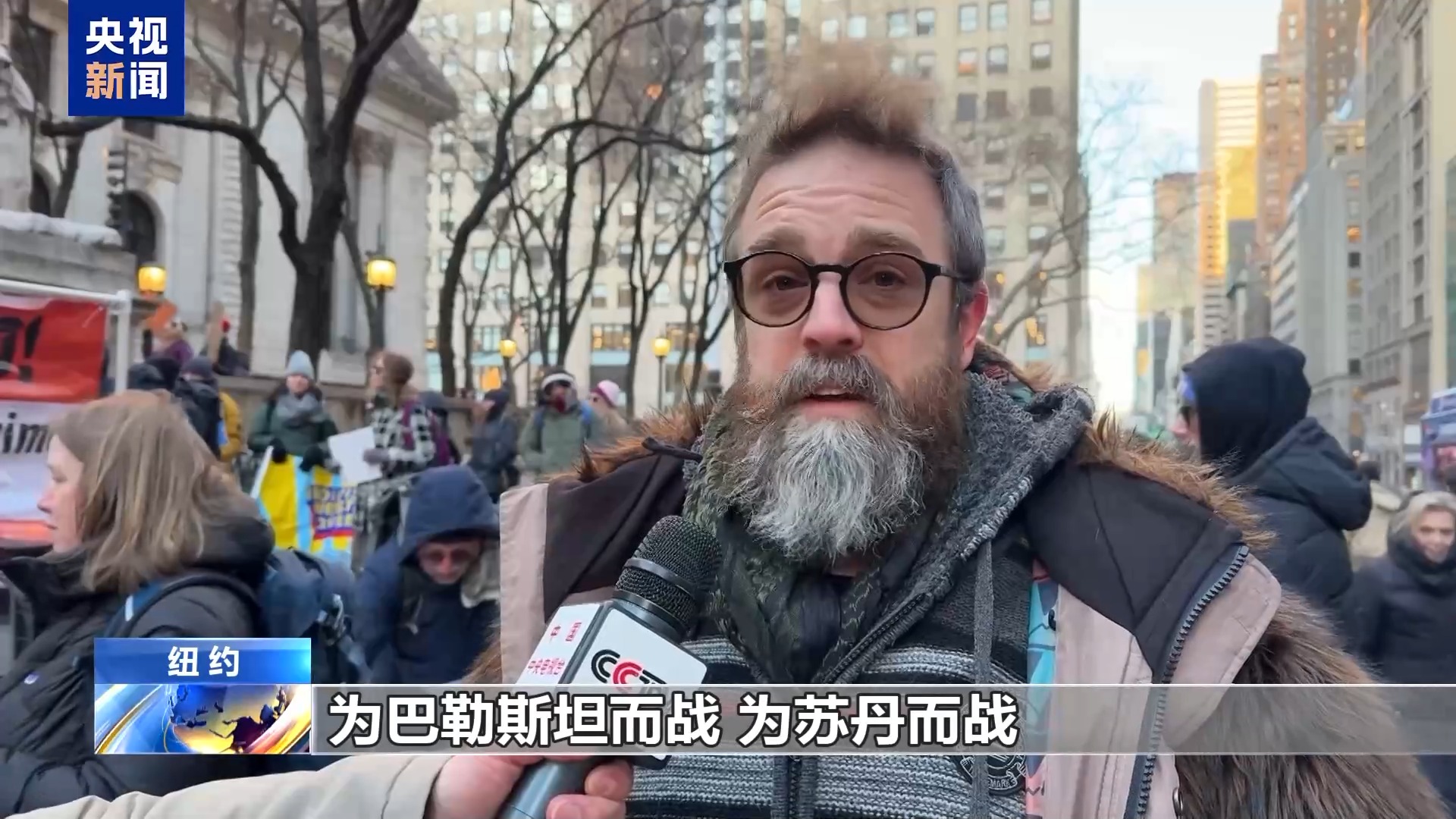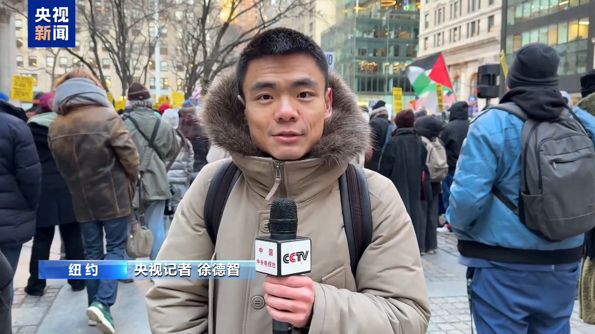 央视记者徐德智:现在纽约的气温是零下7摄氏度,但是我身后仍有数百人而且是越来越多的人聚集在纽约公共图书馆前,表达对本届美国政府系列政策的不满。这些政策既包括移民执法局在内的国内政策,也包括美国政府一系列违反国际法的行为。他们希望本届美国政府可以更多聚焦在民生、教育、医疗等一系列民众关心的问题上面。