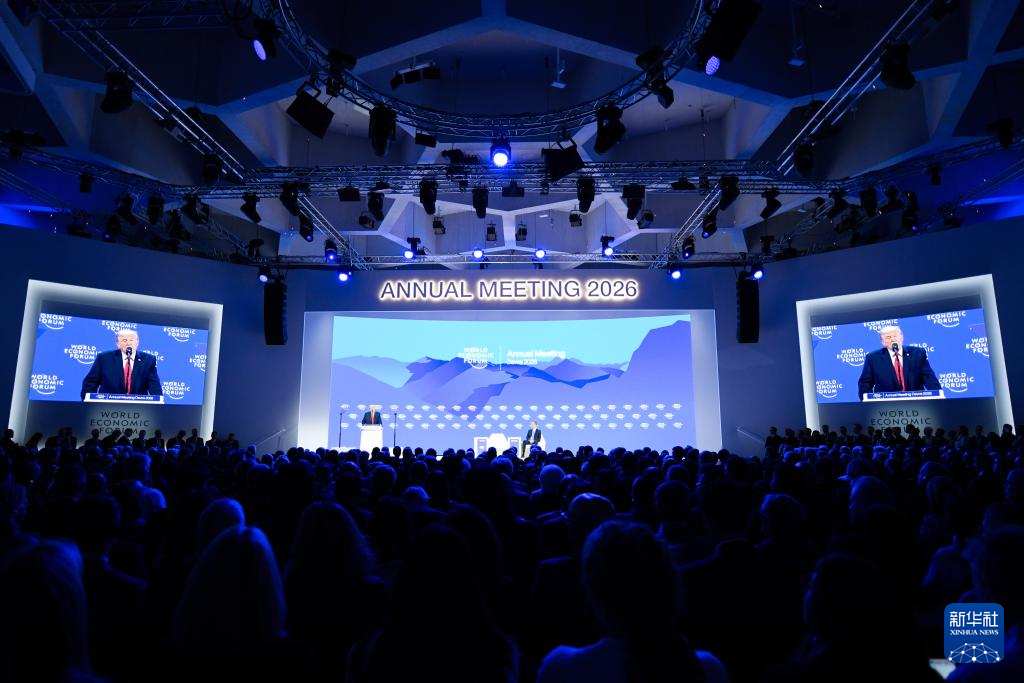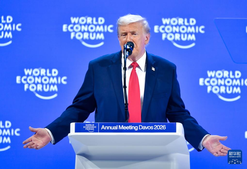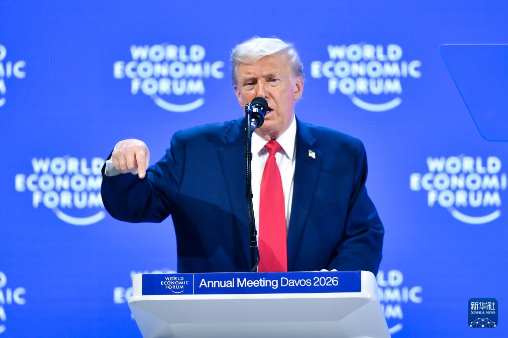 1月21日,美国总统特朗普在瑞士达沃斯举行的世界经济论坛2026年年会发表演讲。