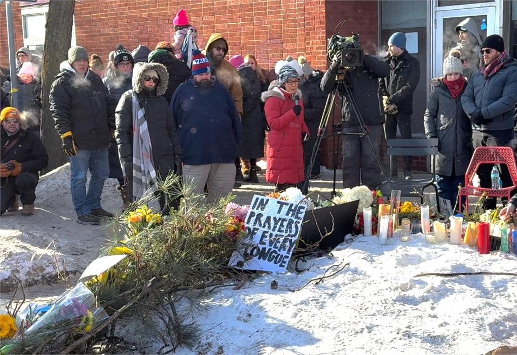 1月25日,在美国明尼苏达州明尼阿波利斯,人们悼念枪击事件遇难者(手机照片)。图源:新华社