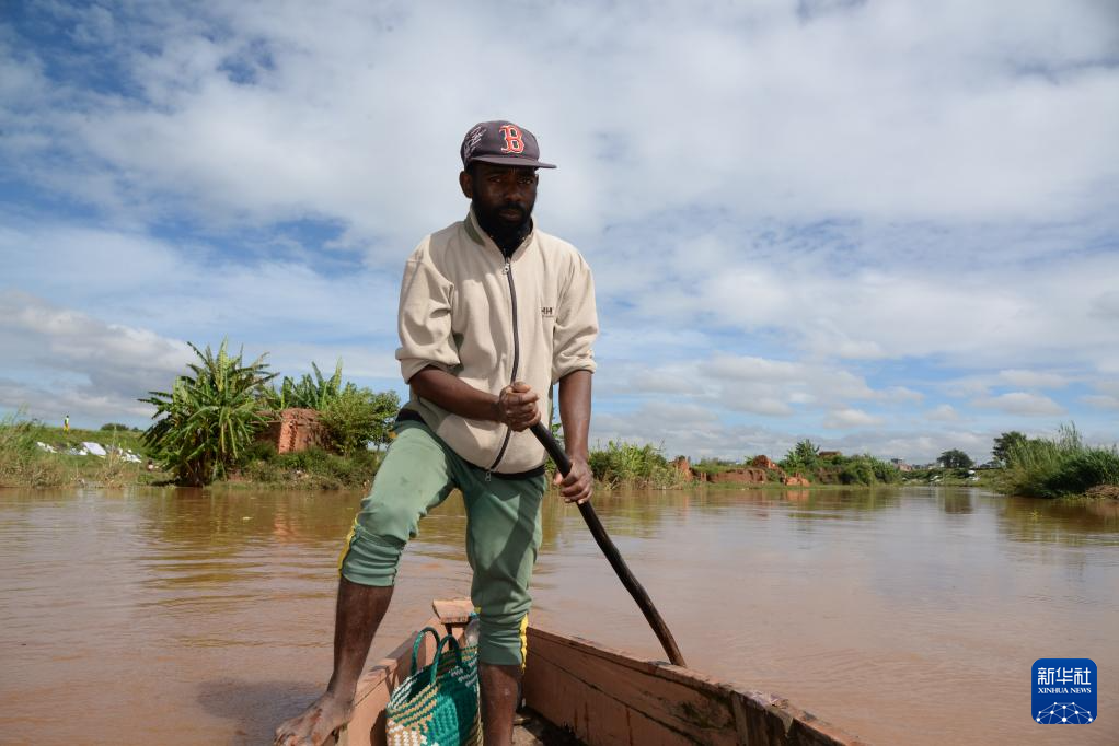 2月12日,在马达加斯加首都塔那那利佛,一名男子划船出行。