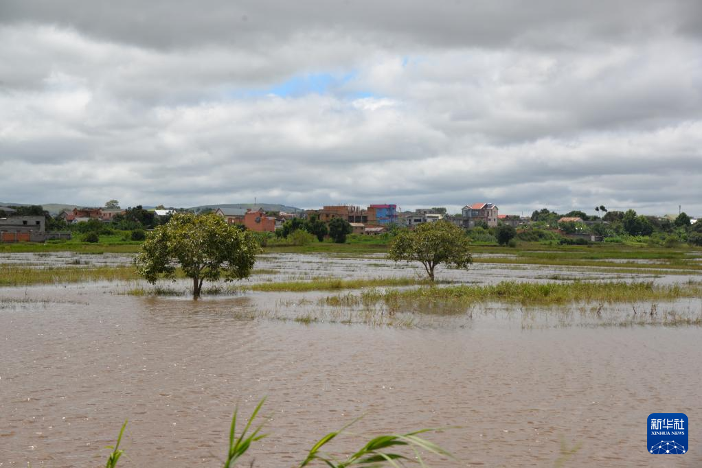 这是2月12日在马达加斯加首都塔那那利佛拍摄的被淹的农田。