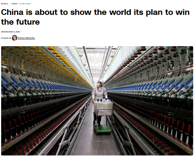 十四届全国人大四次会议3月5日在北京开幕。多家外媒聚焦 “十五五” 规划纲要草案与政府工作报告中的科技创新部署,认为中国以发展新质生产力为引领,把人工智能、量子计算、人形机器人等前沿技术摆在国家发展全局的核心位置,相关战略布局目标明确、举措扎实,展现出加快实现高水平科技自立自强的坚定决心。