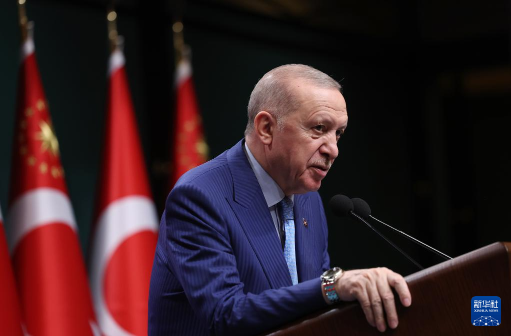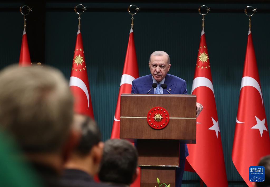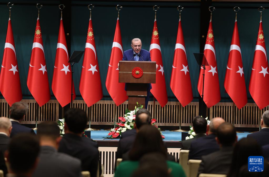 4月20日,在土耳其首都安卡拉总统府,土耳其总统埃尔多安在内阁会议结束后向全国发表电视讲话。新华社发(穆斯塔法·卡亚摄)